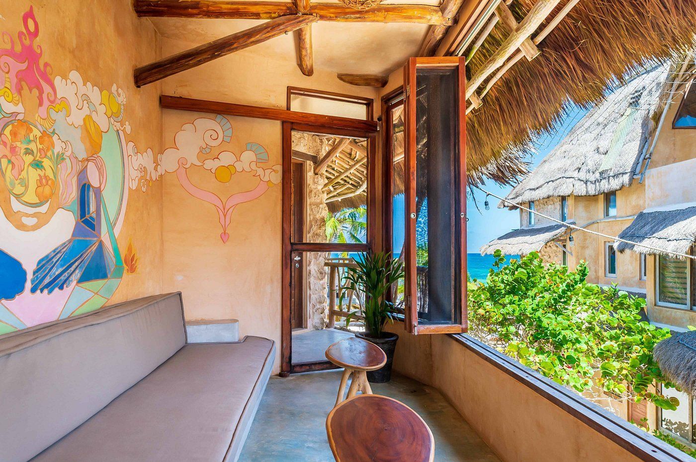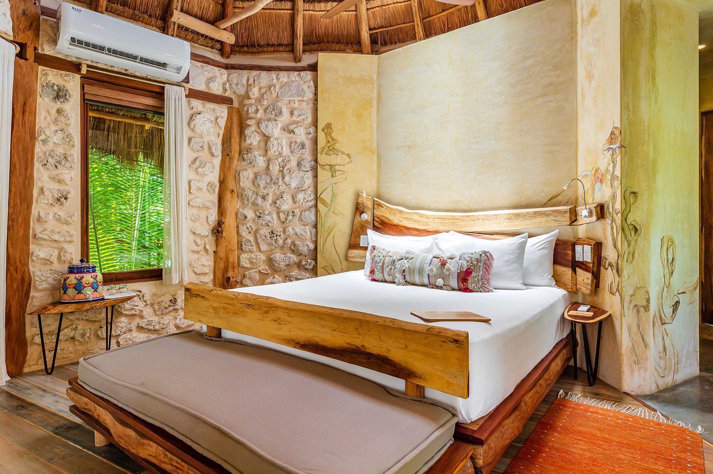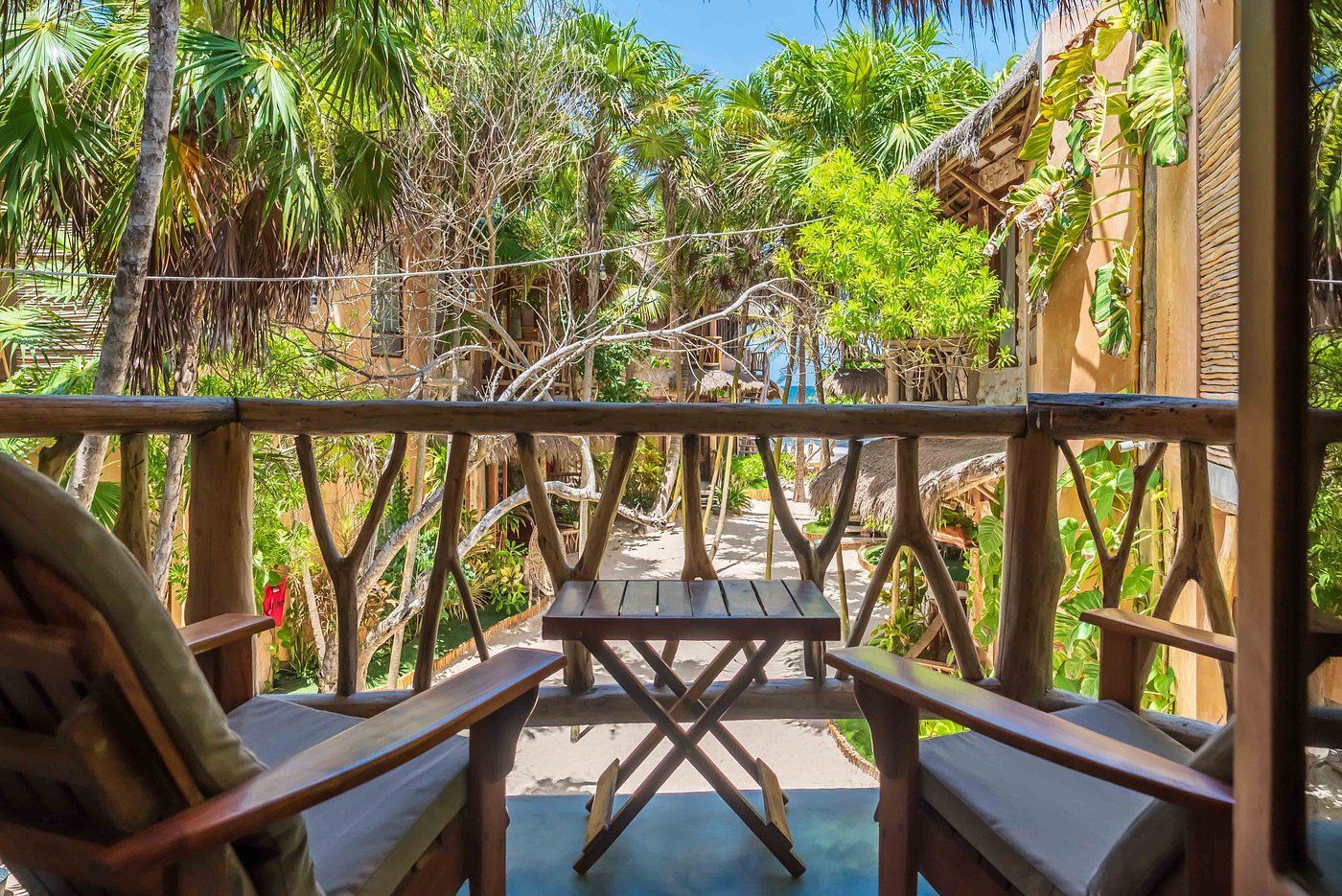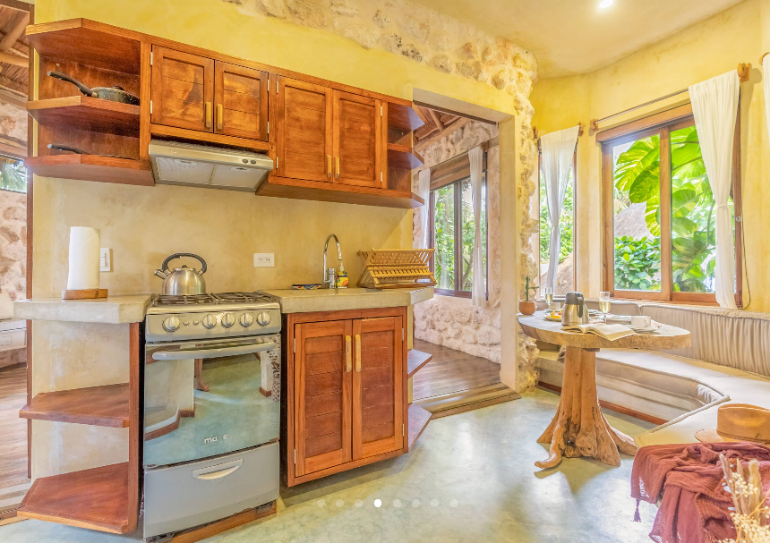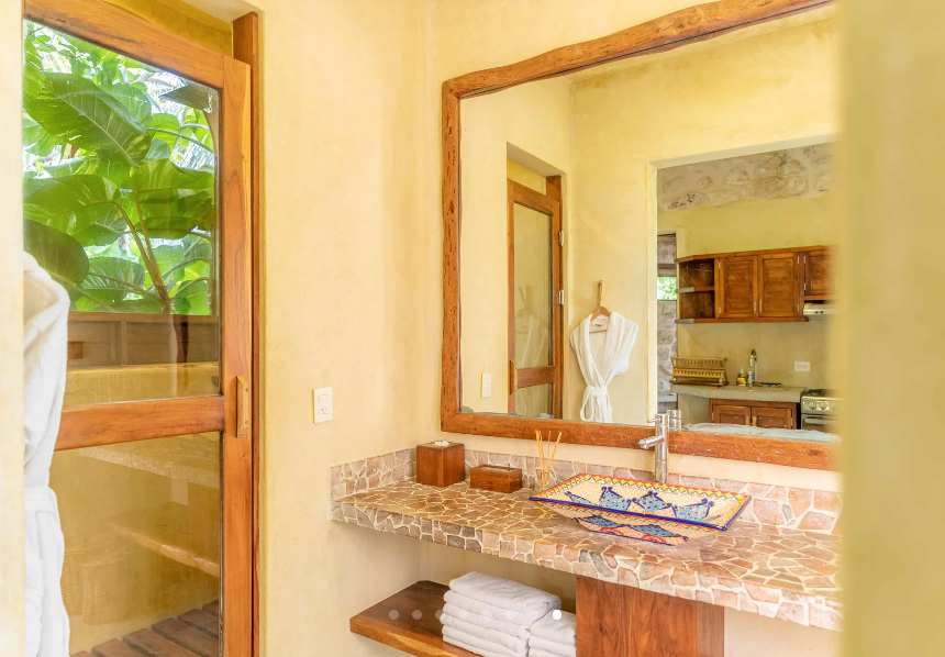 Fall asleep surrounded by the lush Mayan jungle and wake to views of the Caribbean from your private beach cabin. These beachfront accommodations offer a truly magical Tulum experience, inviting deep rest, connection, and renewal. The beautiful eco-chic cabins, villas, and apartments are thoughtfully designed with natural materials and sustainable practices that honor and protect the local ecosystem. Each space features handcrafted wood furnishings, stone walls, and raw, earthy elements that create a calming, grounded atmosphere. Unwind in spa-inspired bathrooms with rain showers and glass walls to bring some nature within.