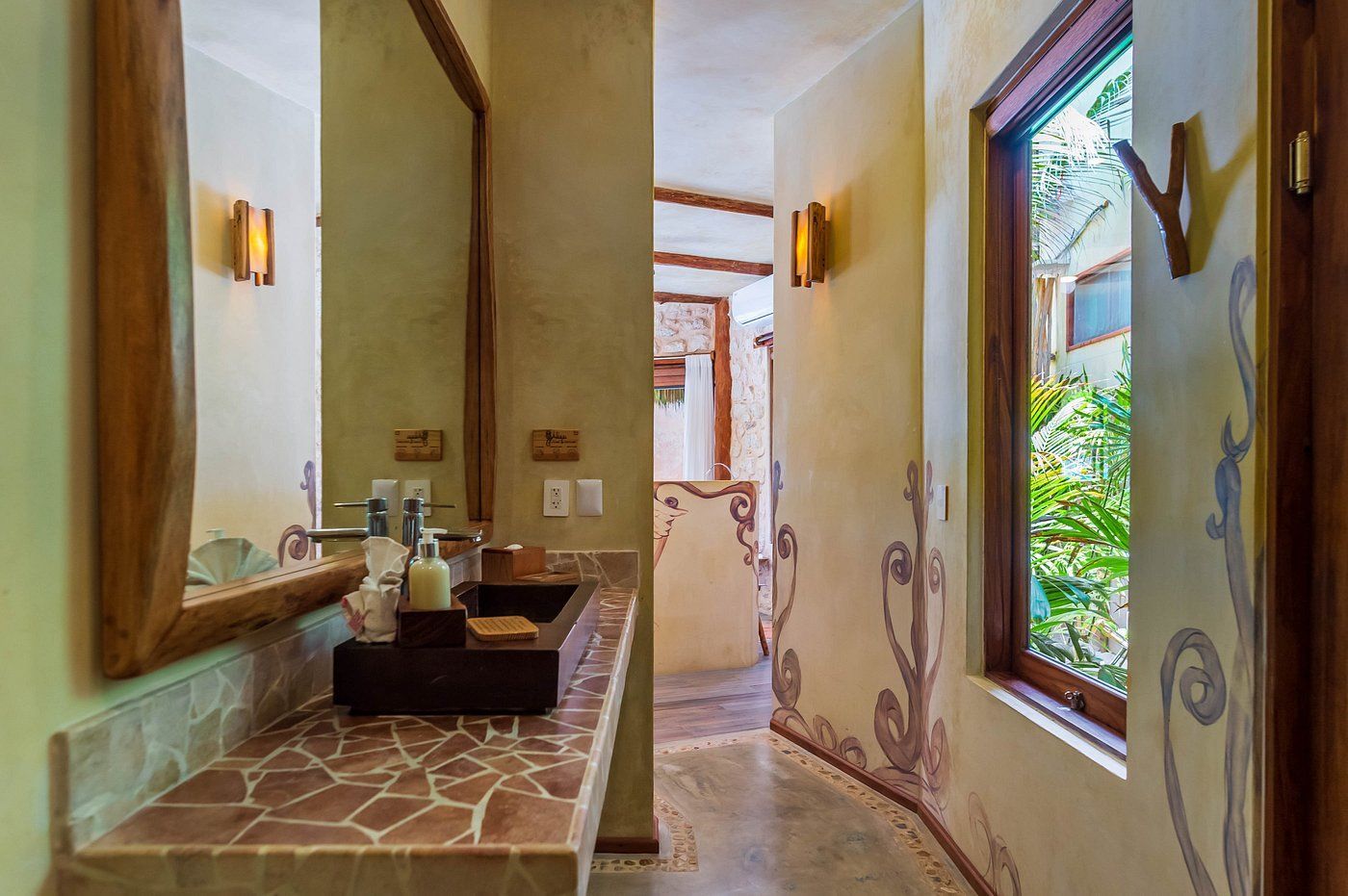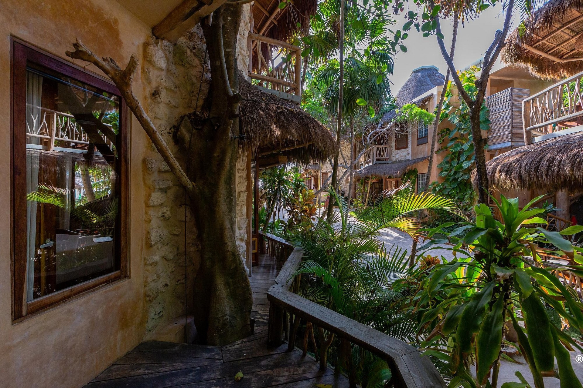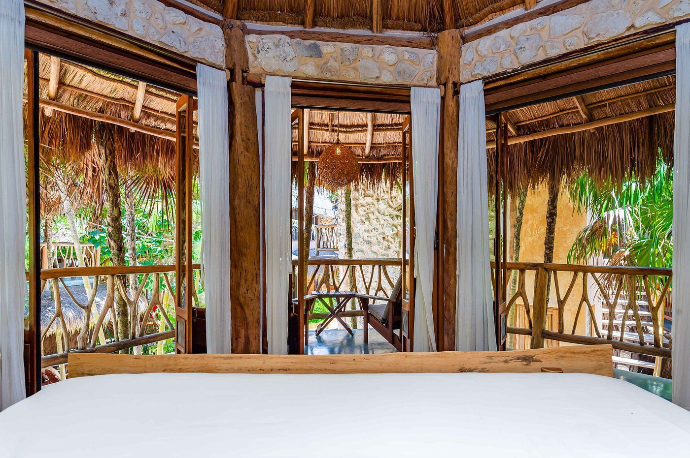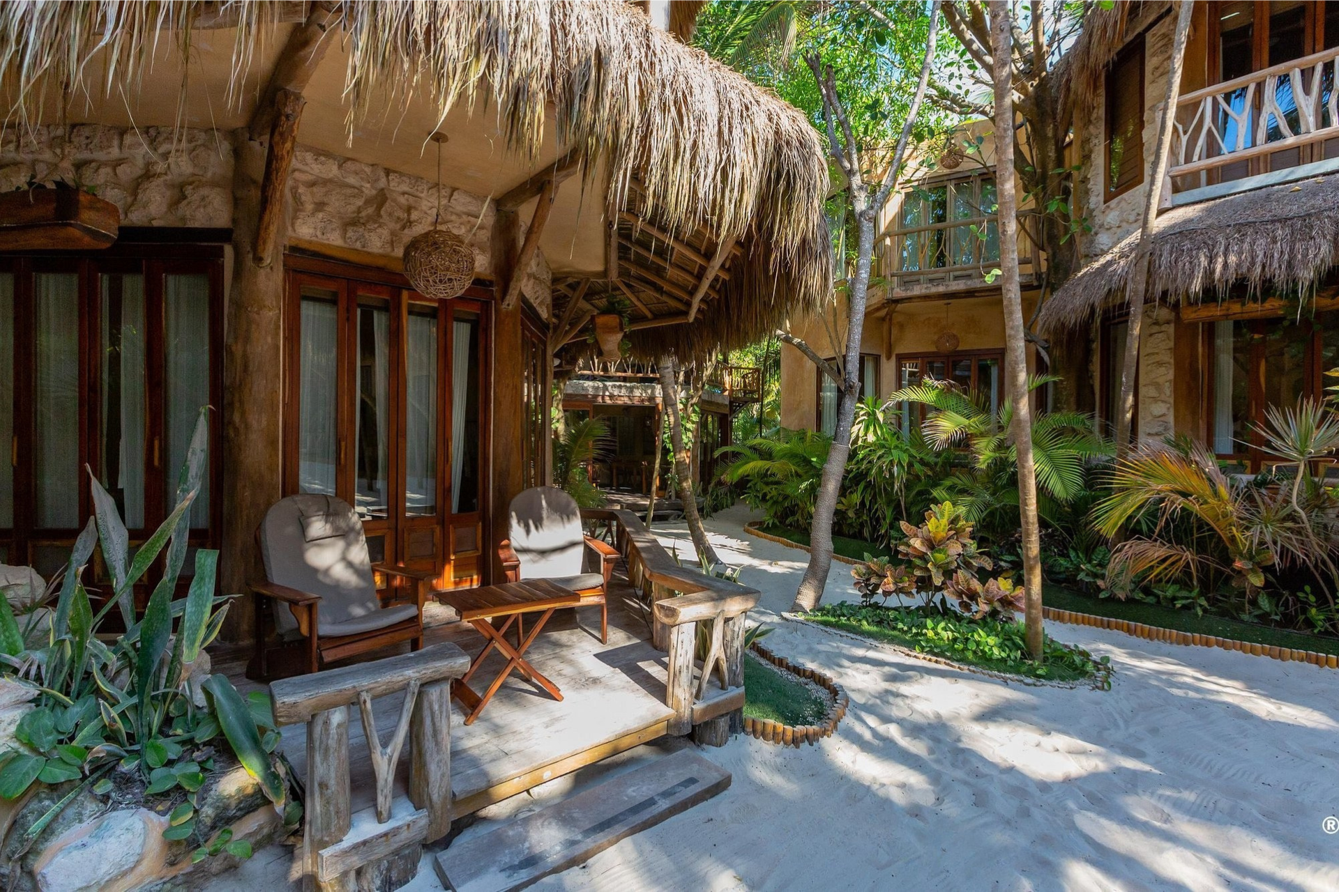 Fall asleep surrounded by the lush Mayan jungle and wake to views of the Caribbean from your private beach cabin. These beachfront accommodations offer a truly magical Tulum experience, inviting deep rest, connection, and renewal. The beautiful eco-chic cabins, villas, and apartments are thoughtfully designed with natural materials and sustainable practices that honor and protect the local ecosystem. Each space features handcrafted wood furnishings, stone walls, and raw, earthy elements that create a calming, grounded atmosphere. Unwind in spa-inspired bathrooms with rain showers and glass walls to bring some nature within.